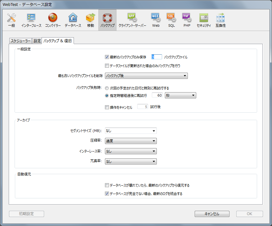 ここでは損傷したデータベースを開く際の自動メカニズムを設定します。
