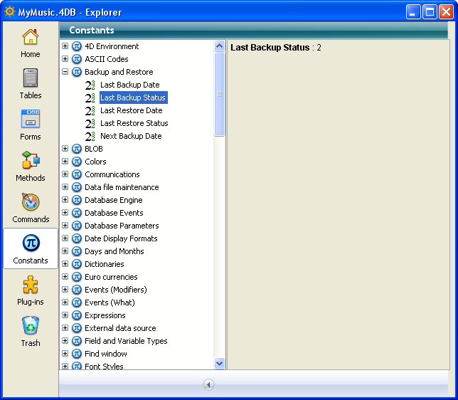 4D provides a set of predefined constants. These constants are grouped by themes in the Explorer Window:
