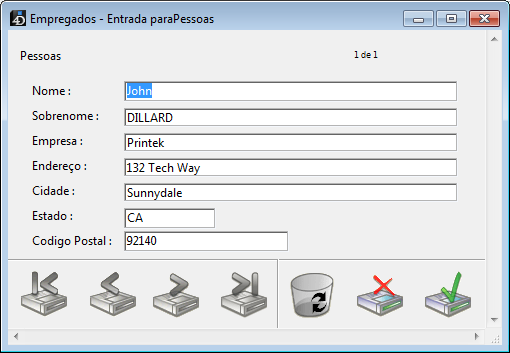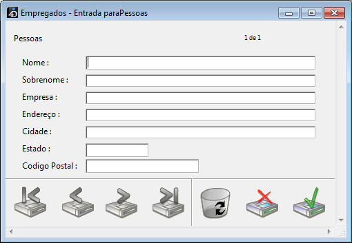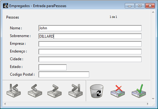 Outro registro em branco aparece, e o usuário clica no botão Cancel (aquele com o "X") para encerrar o "ciclo de entrada de dados." O usuário é retornado para a barra de menu.