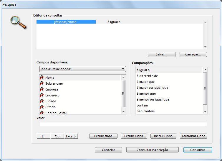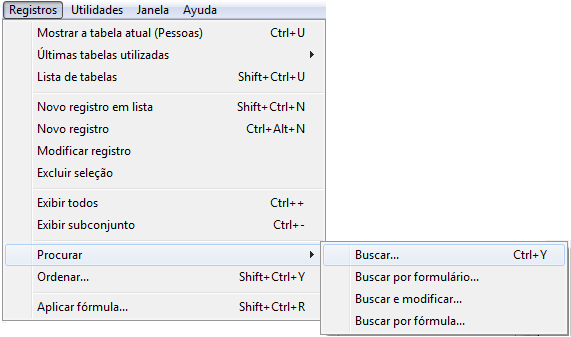 O usuário escolhe Buscar>Buscar... no menu Registros.