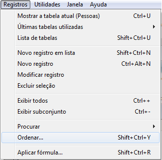 O usuário escolhe  Ordenar no menu Registros.