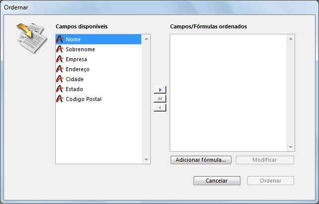 Aparece o editor Ordenar.