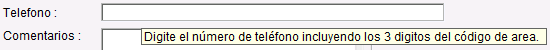 El mensaje de ayuda aparecerá cada vez que el usuario mueva el ratón sobre el campo u objeto.
