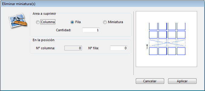 - Defina el elemento (columna, línea, o miniatura) que quiera elimina e indique cuántos.