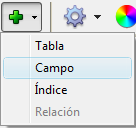 Haga clic derecho sobre una tabla, luego seleccione Añadir campo o Insertar campo en el menú contextual. O Haga doble clic en una línea vacía, debajo del último nombre de campo de la tabla. O Seleccione una tabla, luego en el menú de adición de objetos de la barra de herramientas del editor, elija la opción Campo: