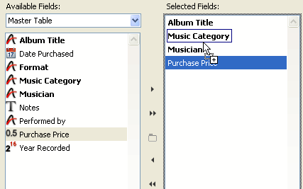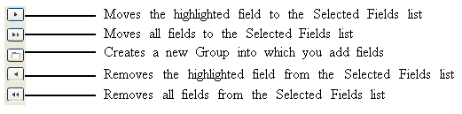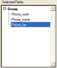 The Selected Fields list takes the form of a hierarchical list. As each field is added to the group box, it appears below the group box name.
