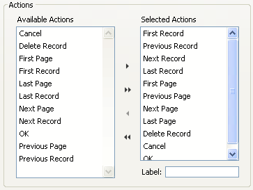 If you want to modify the default label of a button (the template chosen must include labels), highlight the button in the Selected Actions list and enter a new label in the Label area. After entering the label, press Tab or click another button in the Selected Actions list. The label you entered is then displayed in the preview area.