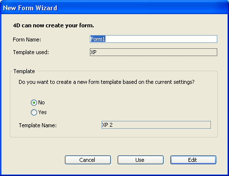 The template controls several aspects of the form appearance, including font attributes, field label placement, the design of decorative rectangles surrounding fields, and platform interface. 4D ships with several templates and you can use the Form Wizard to add custom templates to this list. For more information about adding custom templates, see “Creating a form template” at the end of this section.