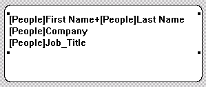 When designing labels, you may want to concatenate several fields. For example, in an address label, the First Name and Last Name fields can be concatenated on the first row of the label. You can also concatenate fields vertically.