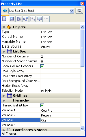 • そのオブジェクトのプロパティリストで"階層リストボックス"オプションが選択されます。
