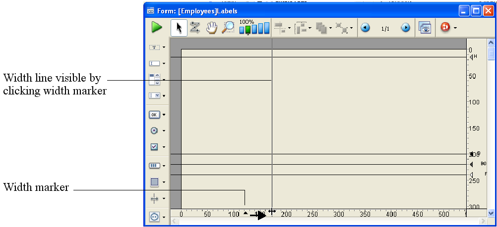 - ラベル幅をフォームエディターの横ルーラー上の幅マーカーで設定します。