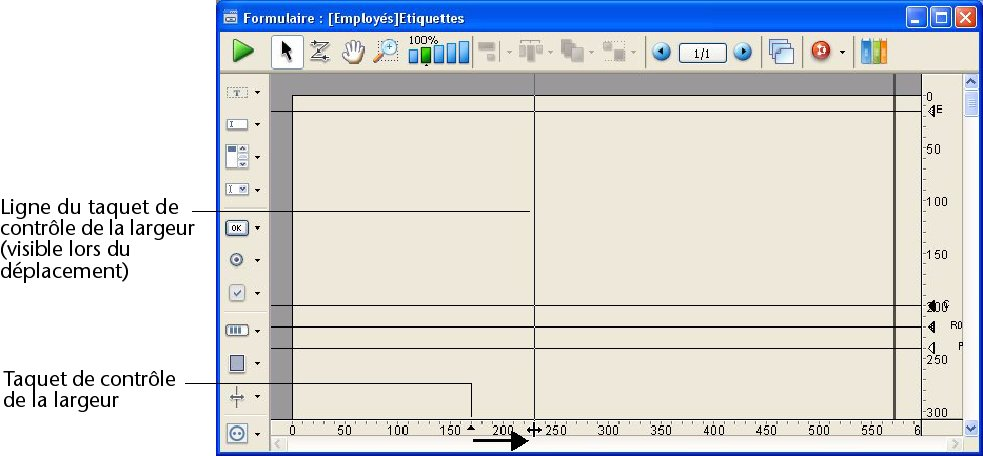 1. Définissez la largeur des étiquettes en faisant glisser le taquet de contrôle de la largeur, situé sur la règle horizontale de l’éditeur de formulaires.