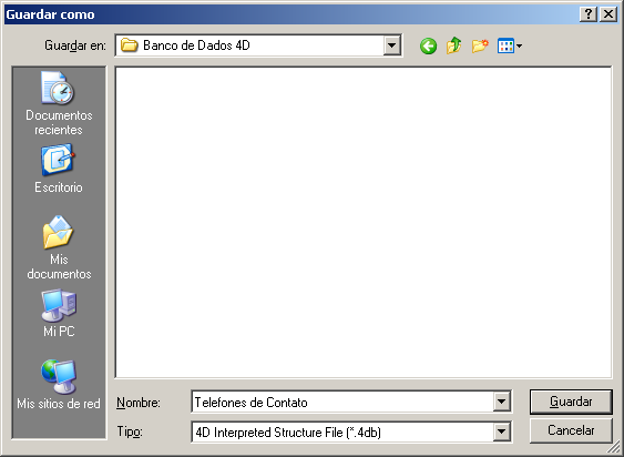 Aparece uma caixa de diálogo padrão de salvar arquivos de maneira que é possível escolher o nome e a localização do banco 4D: