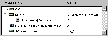 You can evaluate any expression that can be shown in text form. This does not cover picture and BLOB fields or variables. On the other hand, the Debugger uses deployed hierarchical lists to let you display arrays and pointers. To display BLOB contents, you can use BLOB commands, such as BLOB to text.