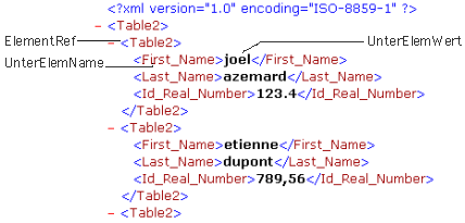 Die Parameter UnterElemName und UnterElemWert empfangen Name und Wert des Unterelements.