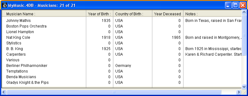 4D is called a relational database application because it can use multiple tables and relate them in various ways. For example, you can create a report for the [Employees] table that searches the [Company] table and automatically displays and prints information about each employee’s company. The relationship between the tables allows information from each table to be available to the report.