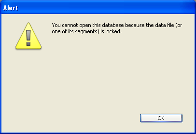4Dはロックされたデータファイルを開かないようにする自動的なメカニズムを実装しています。データファイルがロックされていると、4Dはデータベースを開かず、以下のような警告メッセージを表示します:
