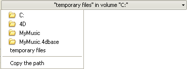 現在のフォルダーの場所は“現在:”エリアに表示されます。このエリアをクリックするとパス名がスクロールダウンリスト形式で表示されます: