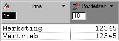 Sie können diese Standardvorgaben ändern. Geben Sie dazu im jeweiligen Eingabebereich einen neuen Wert ein oder ziehen Sie die Spaltenränder auf die gewünschte Größe. Füllzeichen werden bei alphanumerischen Feldern immer am Ende, bei numerischen Feldern immer am Anfang angefügt. Standardmäßig wird die Anzahl der Zeichen folgendermaßen gesetzt: Textfelder sind 80 Zeichen, numerische Felder 10 Zeichen lang. Die Länge von alphanumerischen Feldern richtet sich nach der im Struktureditor festgelegten Länge.
