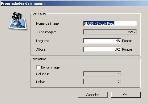 • ID da imagem: número de ID único para a imagem. Este é o número de referência da imagem utilizada quando se cria botões imagem, menus imagem suspensos, barras de ferramentas personalizadas, listas ou quando se controla as imagens da biblioteca por programação.