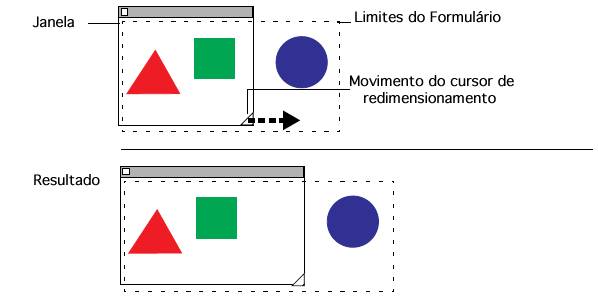 No modo Aplicação, quando um usuário redimensiona a janela de um formulário, os objetos que contém podem ser redimensionados ou movidos.