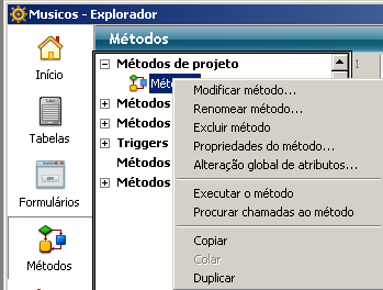 Nota: os métodos de banco de dados não podem ser renomeados, o mesmo acontece com os triggers, métodos de formulário e métodos de objeto, os quais estão atados a objetos e pegam os nomes dos objetos relacionados.