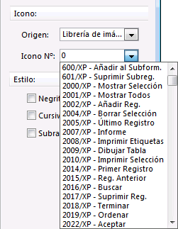 Para borrar una referencia de icono, seleccione el valor en el combo box “Nº icono” y presione la tecla Retroceso o introduzca 0.