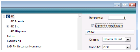 En este caso, la opción Elemento modificable le permite autorizar al usuario a modificar el elemento de la lista jerárquica.
