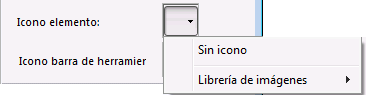 Para borrar un icono asociado a un comando de menú, elija la opción Sin icono en la lista desplegable “Icono barra de herramientas”.