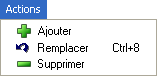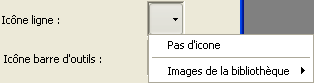 Pour supprimer l’icône de barre d’outils associée à une commande de menu, choisissez l’option Pas d’icône dans le menu de la zone “Icône barre d’outils”.