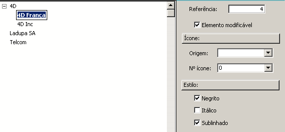 Quando for necessário utilizar a linguagem para determinar qual elemento da lista é selecionado por um usuário, (ou seja, qual elemento é selecionado em um menu hierárquico), é possível identificar a opção do usuário utilizando o número de referência do elemento. Para maiores informações consulte a seção Listas Hierárquicas no manual de Linguagem de 4D.
