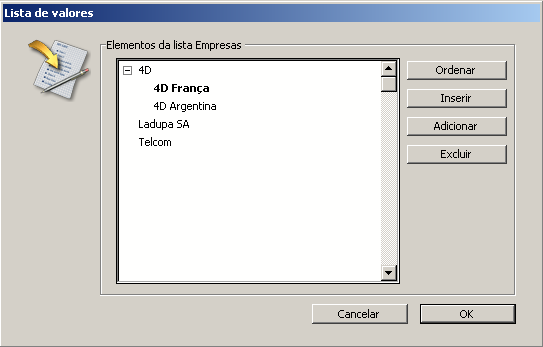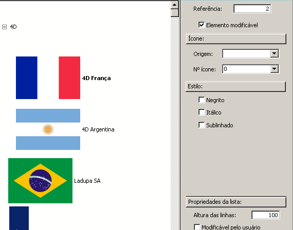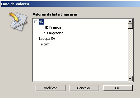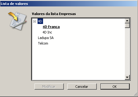 4D lhe permite especificar se uma lista de elementos pode ser modificada pelo usuário quando a lista se mostra como uma lista de opção. Por padrão, uma lista não é modificável.
