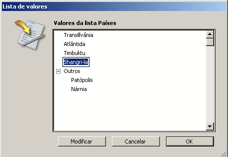 Se uma lista é modificável, o botão Modificar está ativo na caixa de diálogo de lista no ambiente Usuário.