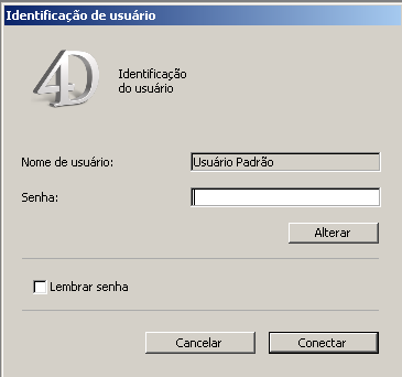 Você pode forçar 4D a mostrar a caixa de diálogo Identificação do usuário, por exemplo, para se conectar ao banco de dados como Desenhador ou Administrador.