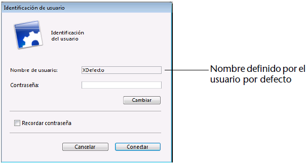 • si no ha asociado una contraseña al Usuario por defecto, no aparece la caja de diálogo Identificación del usuario.