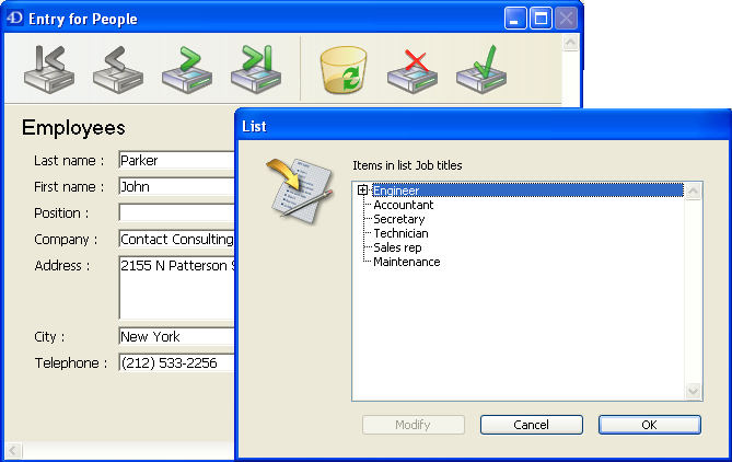 4D allows you to make a list required as part of the data entry controls on a form. This type of data entry control prevents a user from entering any value other than the ones in the list. For example, your company may have a specific group of job titles that are allowed in a personnel database.