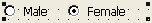 先頭の1 文字が異なるラベルを使用する場合は、データ入力時に最初の1 文字を入力することにより、ラジオボタンを選択することができます。例えばラベルが“Male”と“Female”であれば、フィールドの選択時に“M”キーを押してMale を選択し、“F”キーを押してFemale を選択できます (日本語文字は対応していません)。