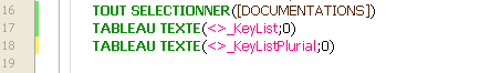 Le double-clic permet de sélectionner des "mots". Lorsque le nom d’un élément référencé (commande, constante, méthode...) contient des espaces, vous pouvez le sélectionner entièrement en utilisant la combinaison Alt/Option + Double-clic.