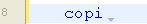 Dans l’exemple ci-dessous, la saisie de la chaîne “copi” provoque l’affichage d'un triangle bleu indiquant que 4D propose plusieurs suggestions :