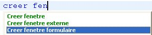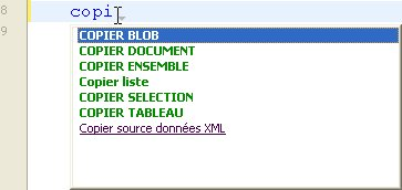Note : Lorsque les caractères saisis ne correspondent qu’à une seule valeur possible, elle apparaît en grisé et est insérée dans l’éditeur lorsque vous appuyez sur la touche Tabulation :