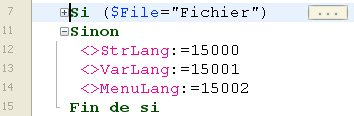 Une portion de code contractée peut être sélectionnée, copiée, collée ou supprimée. Toutes les lignes incluses seront respectivement copiées, collées ou supprimées. Lorsqu’une portion de code est collée ou imprimée, elle est automatiquement déployée.