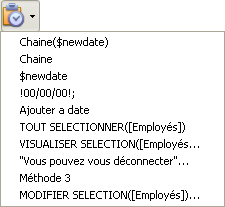 Note : Pour des raisons pratiques, vous pouvez désactiver l'affichage automatique de la fenêtre de suggestion pour les constantes, variables locales et interprocess et/ou les tables. Ces options sont accessibles dans la Page Méthodes des Préférences utilisateur.