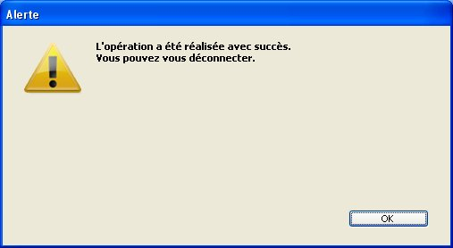 ALERTE("L'opération a été réalisée avec succès.\rVous pouvez vous déconnecter.")