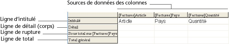 Sources de données des colonnes : ces intitulés indiquent la provenance des données de chaque colonne. Mode Tableau croisé :