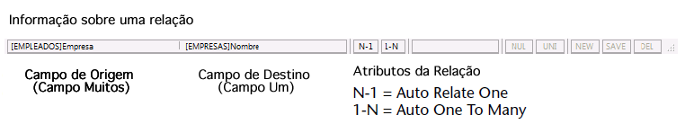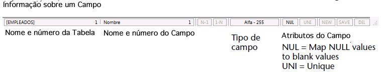A parte inferior da janela do editor é uma barra de informação que mostra os dados em função da área sobre a qual se passa o cursor: tabela, campo ou relação.