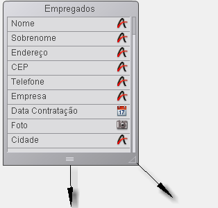 Quando adiciona campos a uma tabela ou quando diminui o tamanho da tabela, pode haver mais campos na tabela do que a imagem pode mostrar. Nesse caso, 4D mostra automaticamente um cursor que permite movimentar-se pela lista dos campos visíveis: