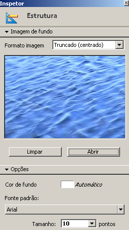A janela do editor de estrutura dispõe de propriedades específicas que podem ser configuradas através do Inspetor.