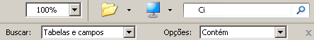 • O menu Buscar permite definir o alcance da pesquisa (tabelas e campos ou apenas tabelas).