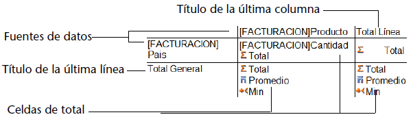 Celdas de títulos: estas celdas contienen los títulos de la última columna o de la última fila. Se puede modificar su contenido.