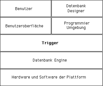 Trigger arbeiten auf der Ebene der Datenbank-Engine. Das zeigt folgendes Schema: